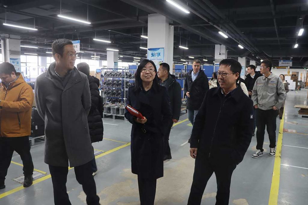 在智能立体库参观环节,考察团详细了解了新松医疗在智能化仓储管理方面的应用成果。该系统通过实时数据监控实现了供应链全流程可追溯,在保障国际订单高效履约方面发挥了重要作用,有效降低人工成本、提升运营效率;随后,考察团走访核心生产线,深入了解从关键部件组装、性能测试到成品包装的全流程。高度透明、标准化的精益生产体系,直观呈现了新松医疗在高质量制造方面的坚实基础;在产品展示区,李联庆总监详细介绍了公司多款具备自主知识产权的医疗装备,涵盖呼吸治疗、康复护理等多个细分领域。作为国家高新技术企业,新松医疗始终坚持以技术创新驱动发展,不仅建立了覆盖全流程的质量管理体系,还获得多个发达国家和地区的医疗器械资质认证,产品已服务于全球多个国家和地区。